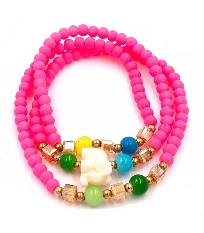 Браслет трійн. із пласт. намистин, слоник, колір в асс.