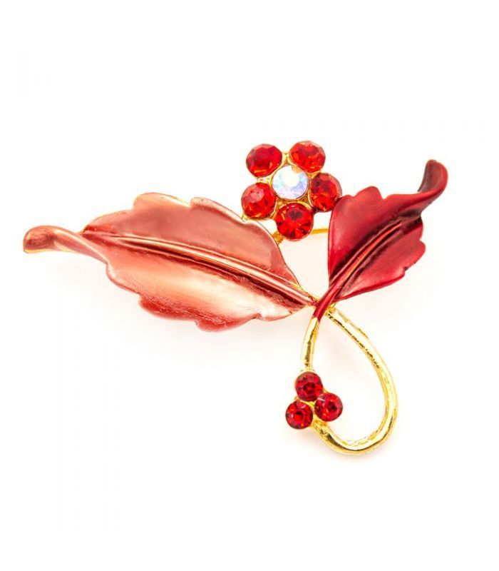 Брошка "Квіточка" червоні стрази