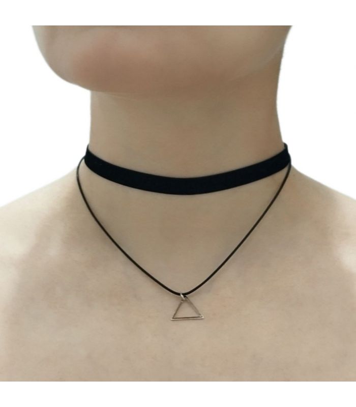 Чокер подвійний, замшевий, чорний "Трикутник"