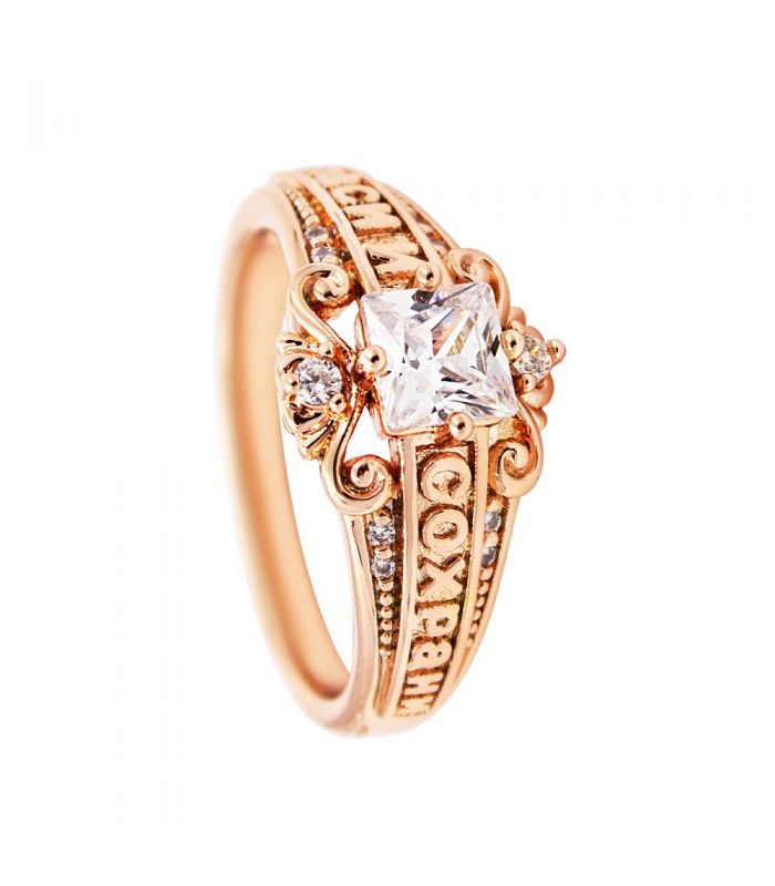 Кільце позолота "Врятуй та Збережи" квадратний камінь