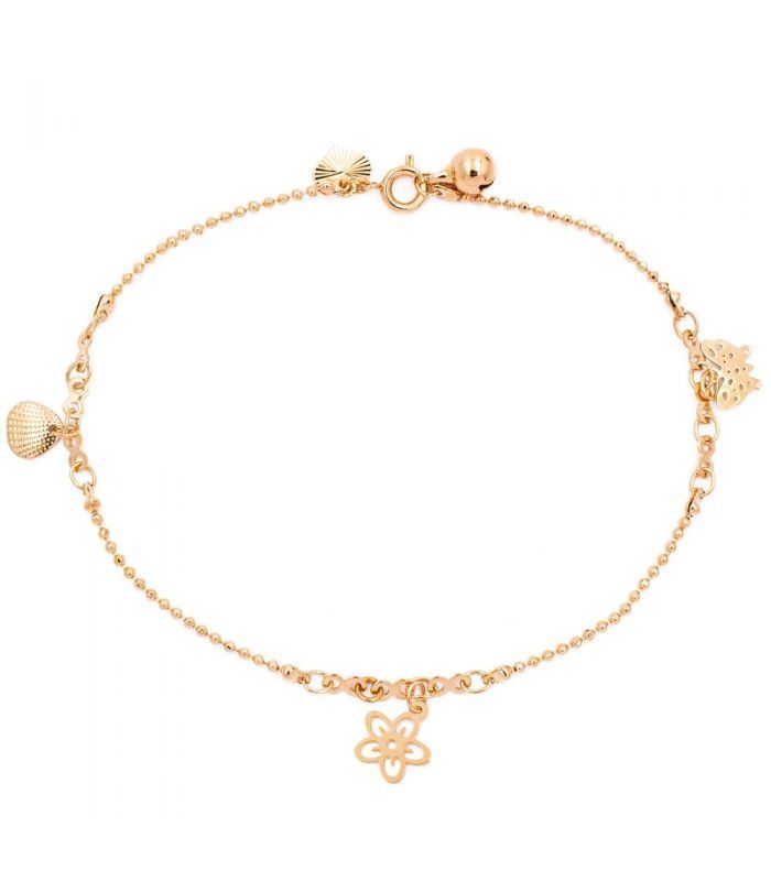 Браслет на ногу плетіння «кульки» із квіточками лимонна позолота