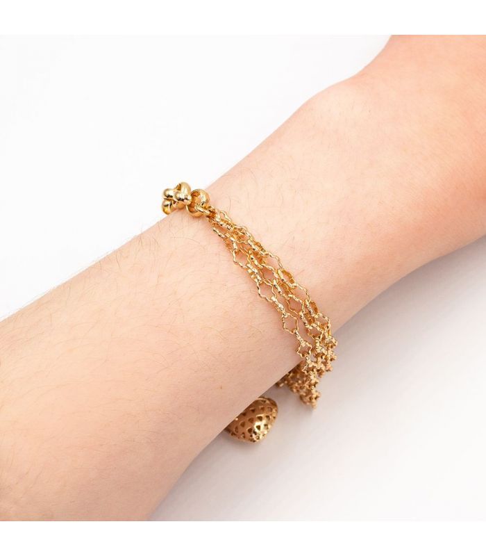 Браслет лимонна позолота, подвійний із підвіскою «Серце»