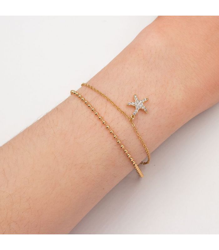 Браслет лимонна позолота, подвійний «Морська зірка»