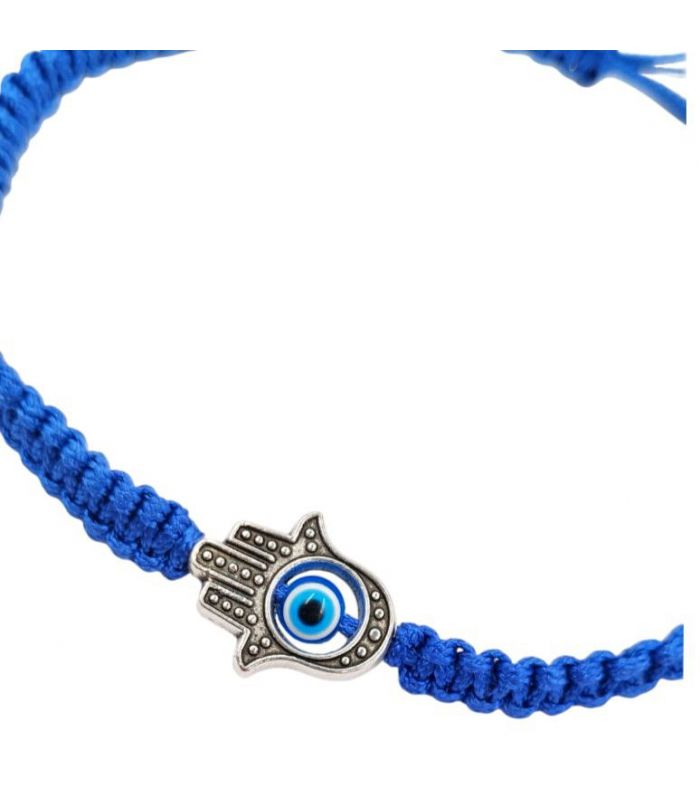 Браслет синя нитка "Хамса" родій