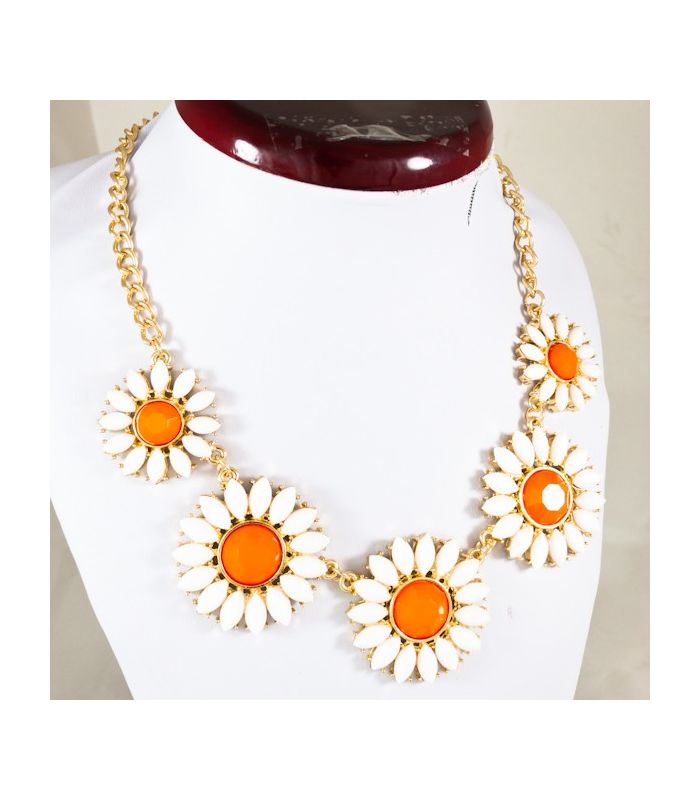 Кольє ромашки та квіти з каменів та страз на ланцюгу