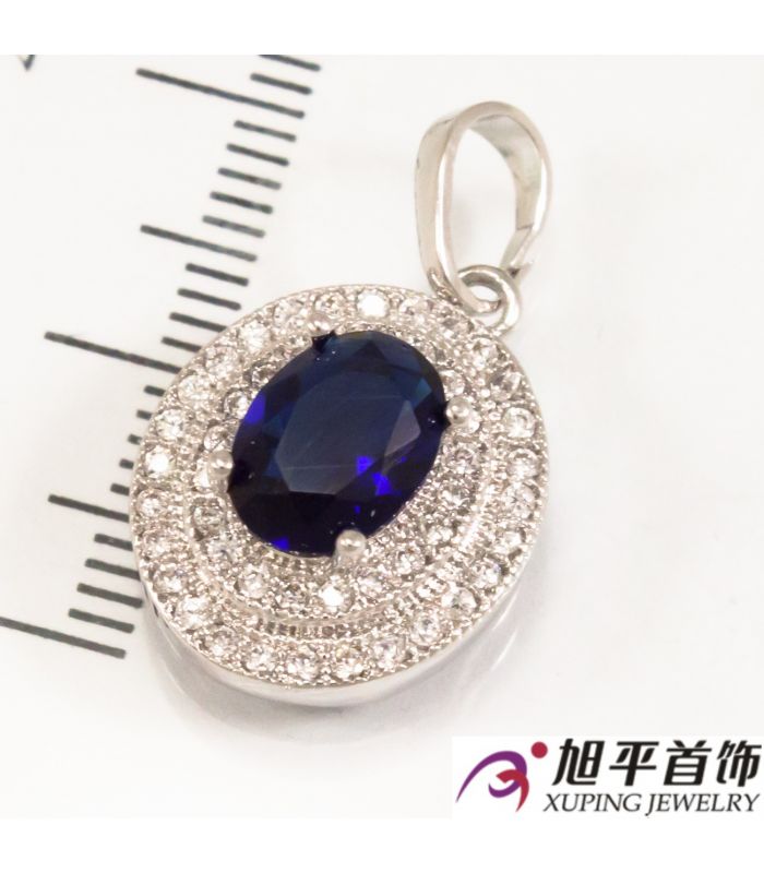 Підвіска родіум Овальний камінь у 4х тримачах у подвійній оправі дрібного каміння