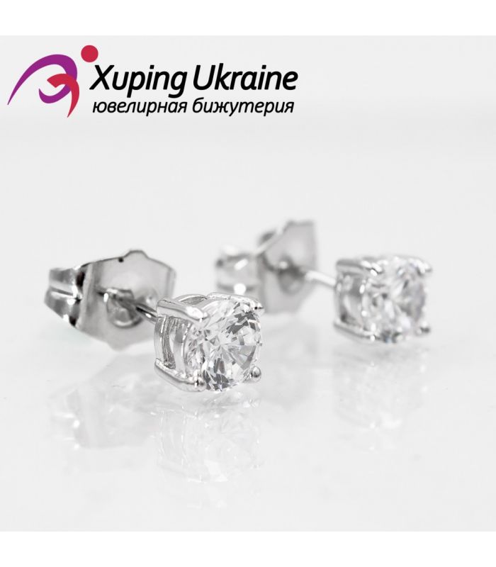 Сережки-гвоздики родіум "Камінь 0,5 см" (Медичне золото)