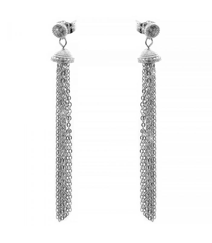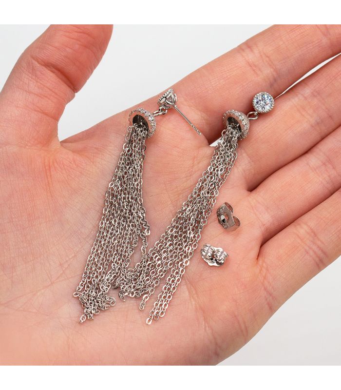 Сережки-гвоздики родій 10 ланцюжків на металевому капелюшку