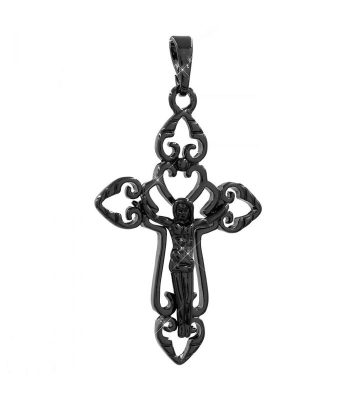Підвіска чорний родій Хрестик із розп'яттям ажурний, 3 см