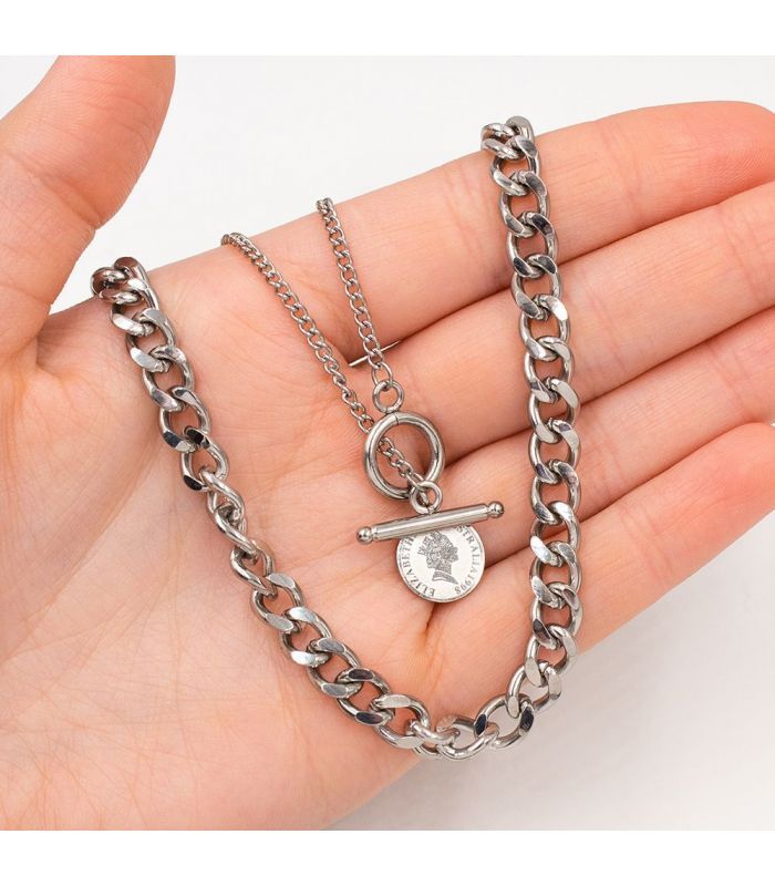 Подвійний ланцюжок із «Монетою» панцирне плетіння Медична сталь