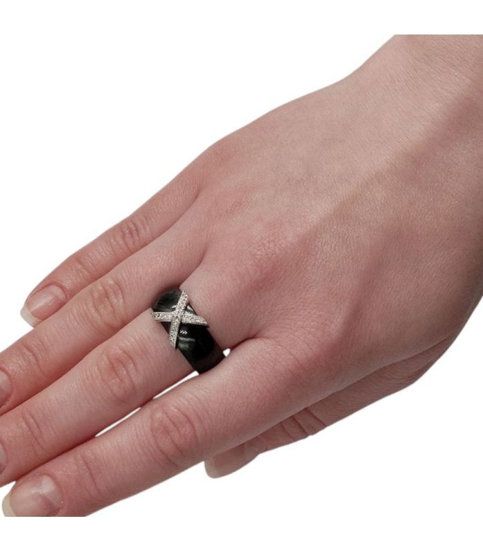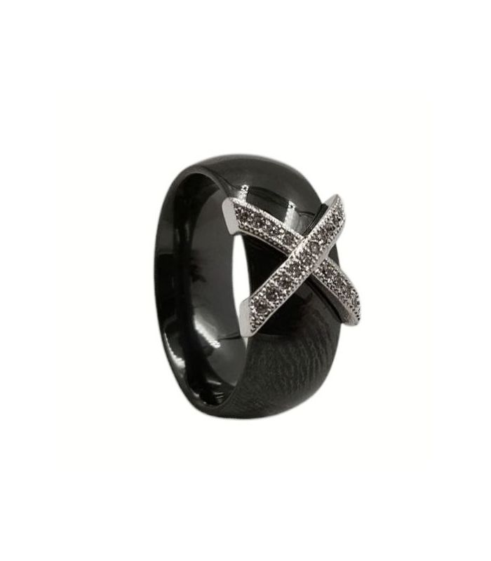 Кольцо керамическое со стальной вставкой с цирконами