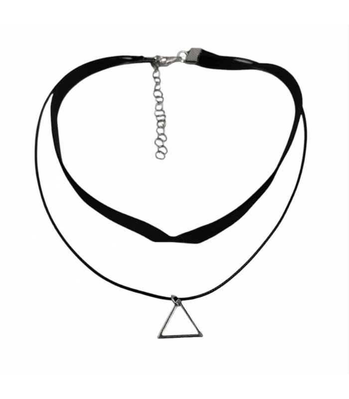 Чокер двойной, замшевый, черный "Треугольник"