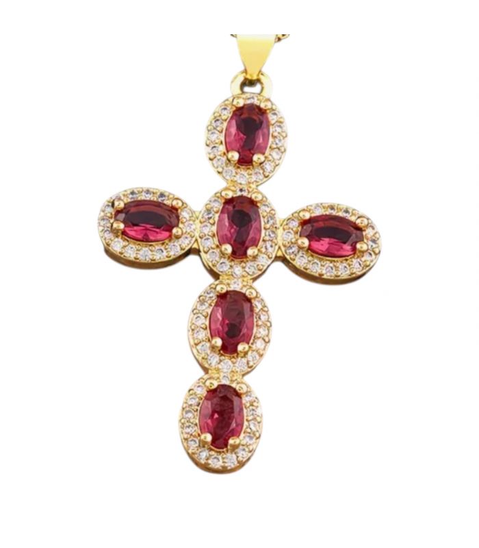 Кулон Крестик с малиновыми цирконами лимонная позолота