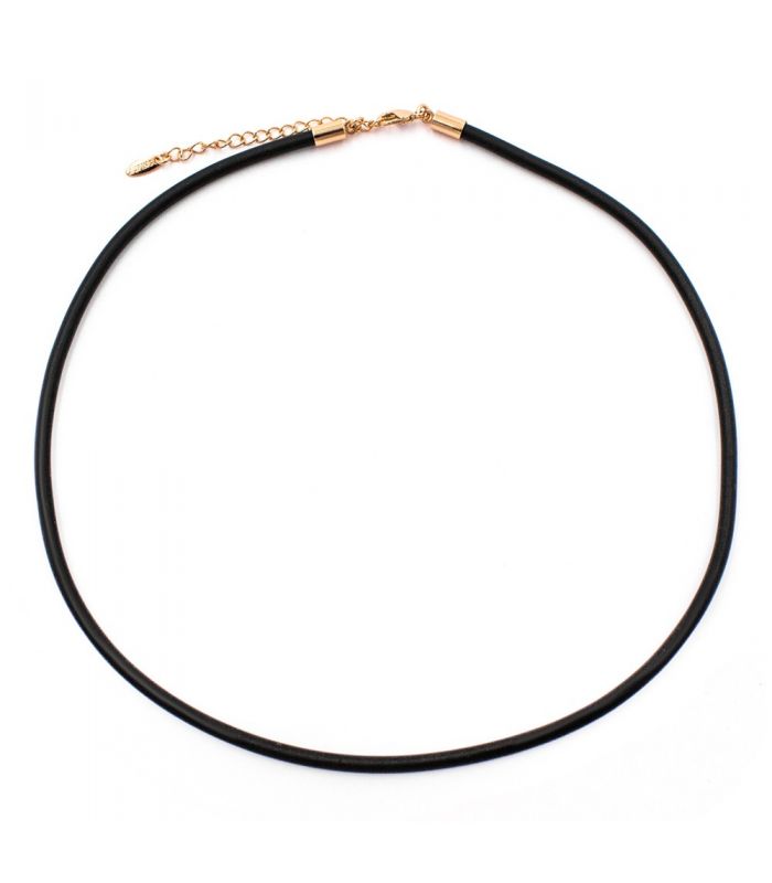 Шнурок на шею черный каучуковый лимонная позолота 0,3*50 см+5см (Медицинское золото)