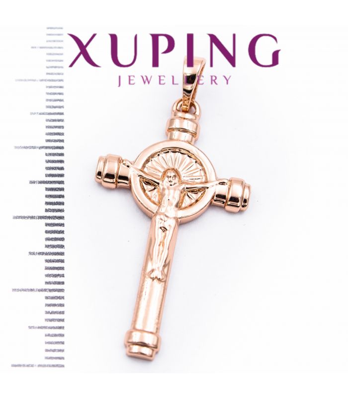 Подвеска позолота Крестик с распятием, с кругом, полосочки по краям, 3 см