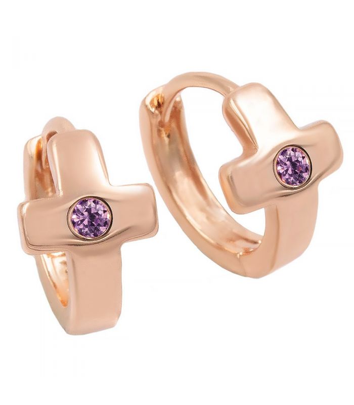 Серьги позолота Маленький камушек в крестике (колечко)