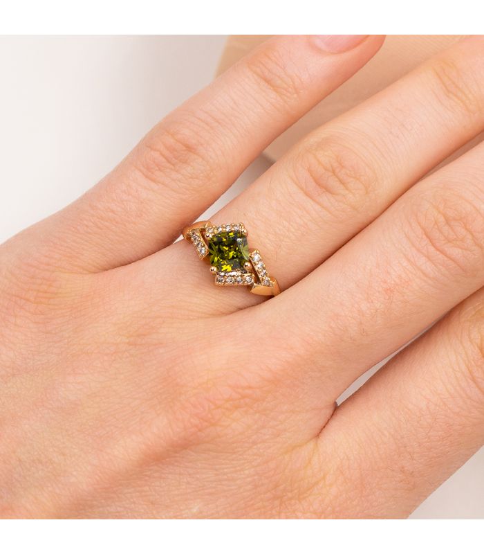 Кольцо лимонная позолота "Камень ромб"