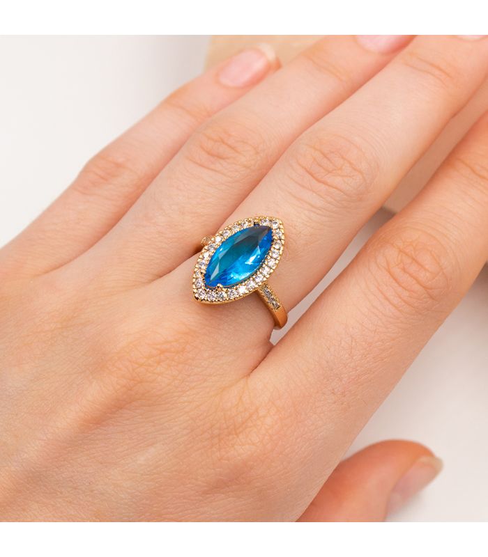 Кольцо Xuping лимонная позолота Маркиз с голубым цирконом медицинское золото