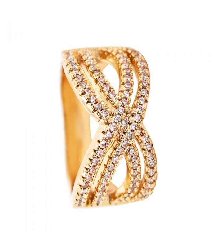 Кольцо “Переплетенье” лимонная позолота (Медицинское золото)
