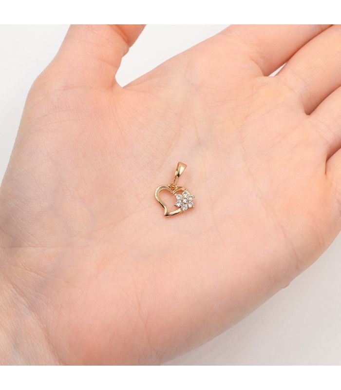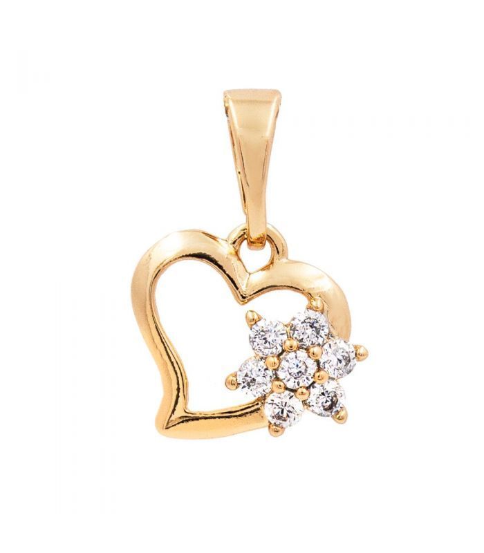Подвеска "Цветочек на контуре сердца" лимонная позолота