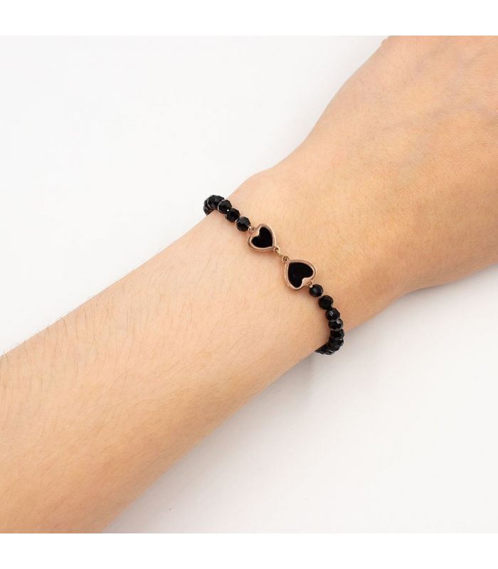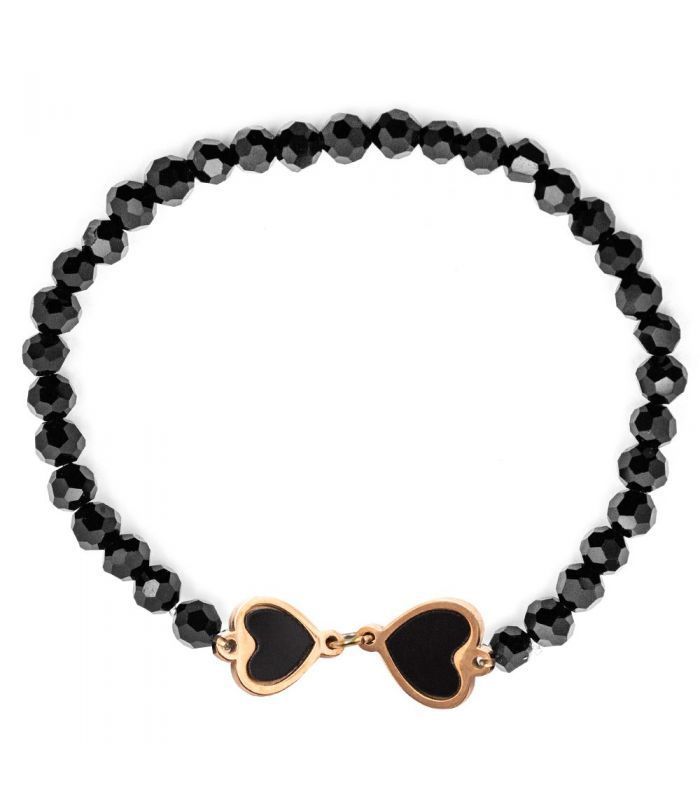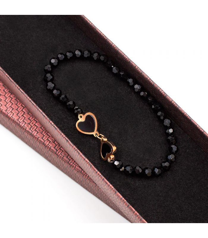 Браслет чешский хрусталь с подвеской позолота «Сердечки»