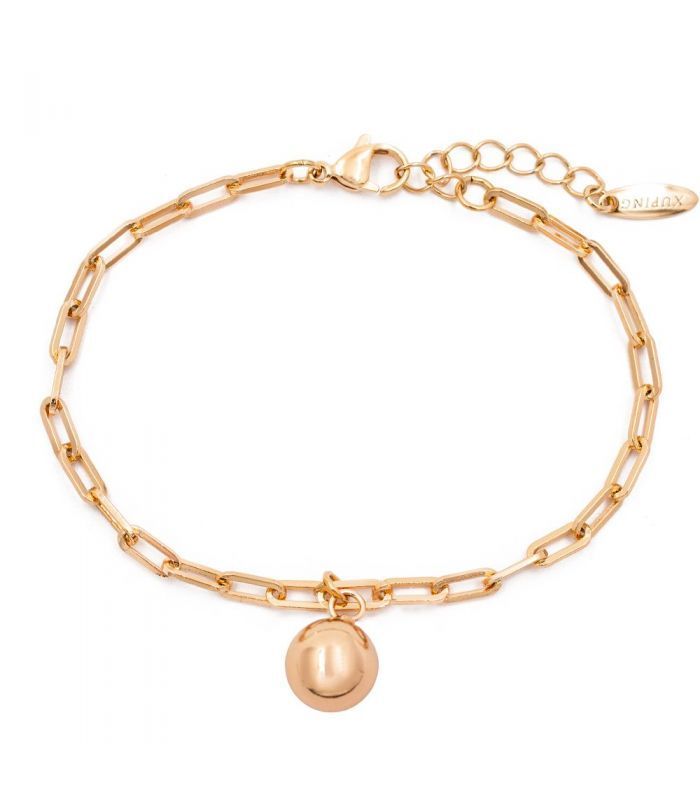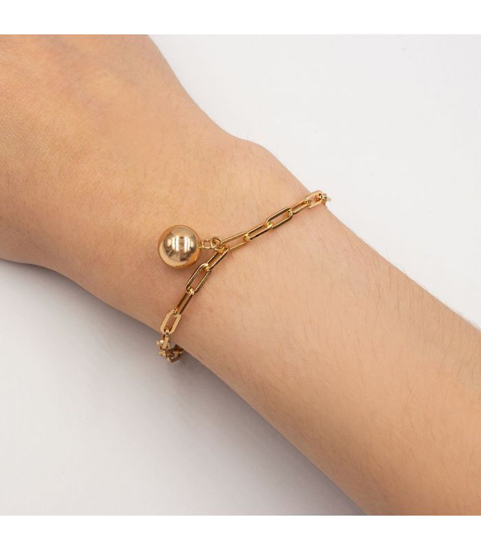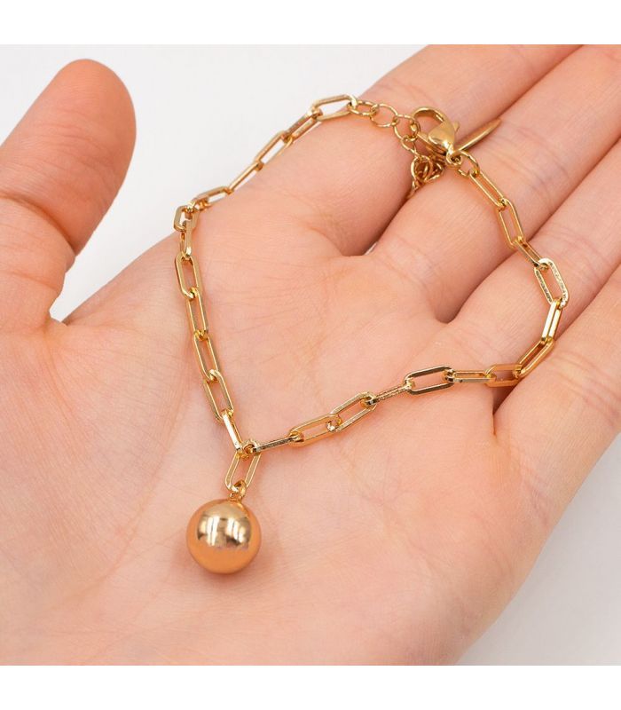 Браслет лимонная позолота, цепь, без камней с подвеской «Шарик»