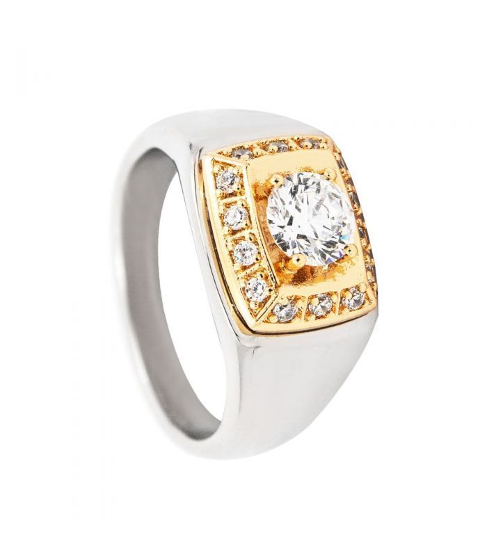 Кольцо печатка мужская, два цвета, родий и лимонная позолота