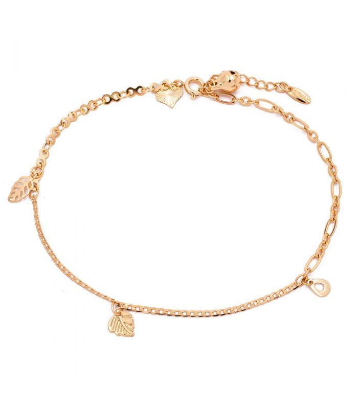 Браслет на ногу комбинированное плетение с листочками лимонная позолота