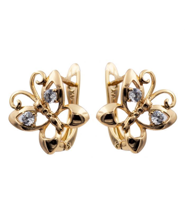 Серьги лимонная позолота Бабочки (Медицинское золото)