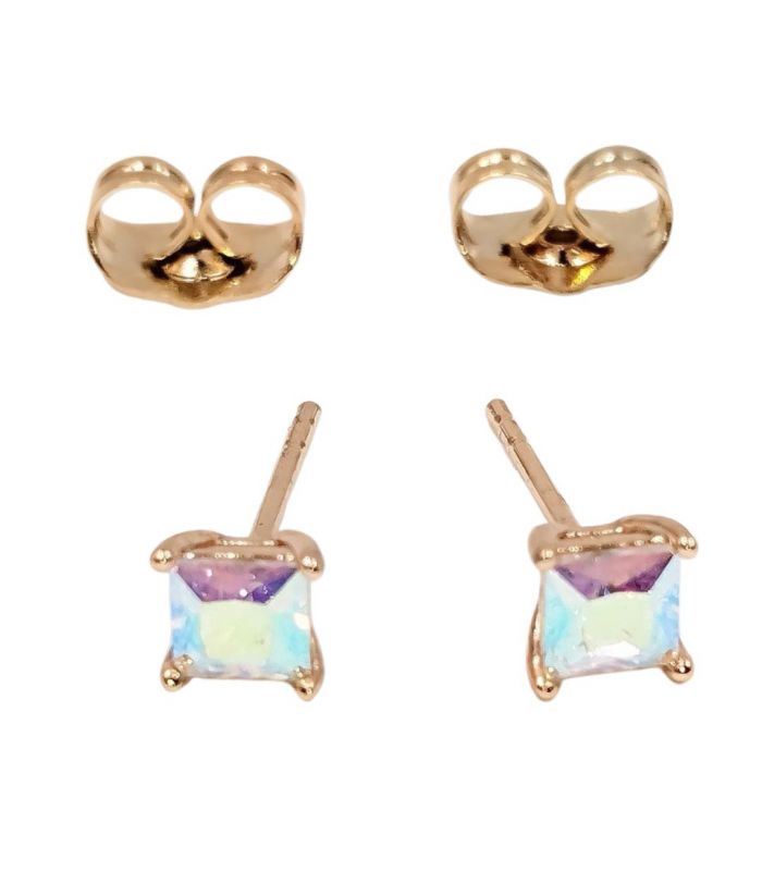 Серьги-гвоздики Квадрат-камень 0,4 см лимонная позолота