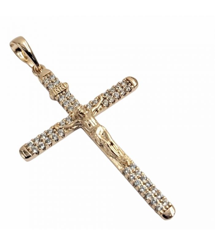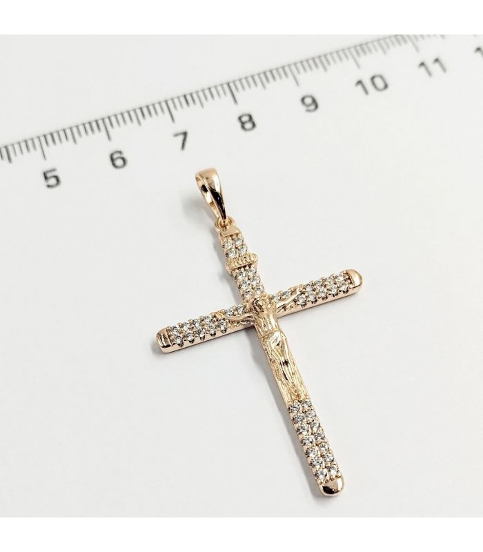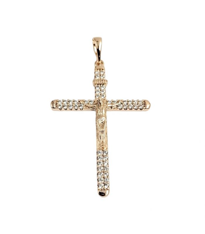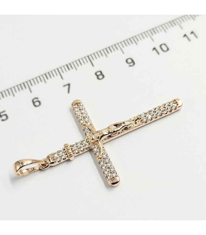 Подвеска Крестик с распятием, с камешками , лимонная позолота