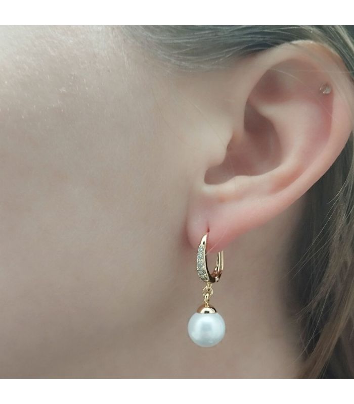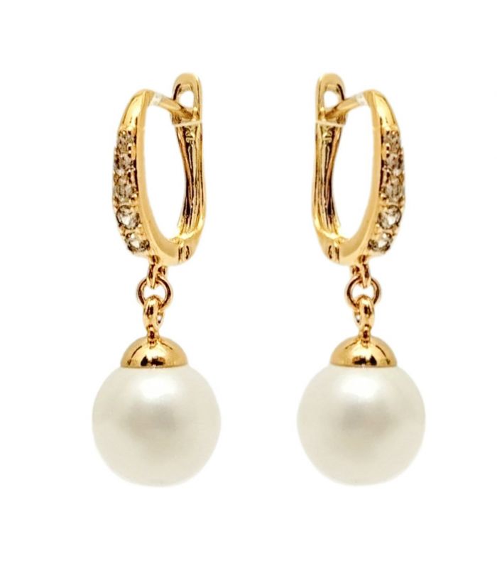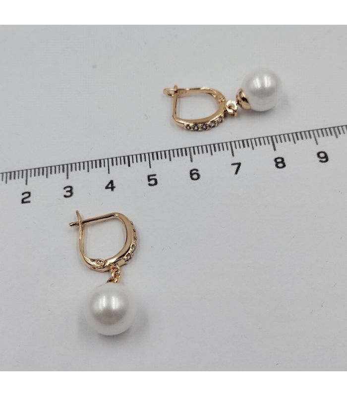 Серьги-подвески с жемчугом и цирконами, лимонная позолота