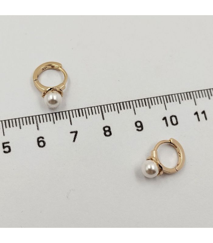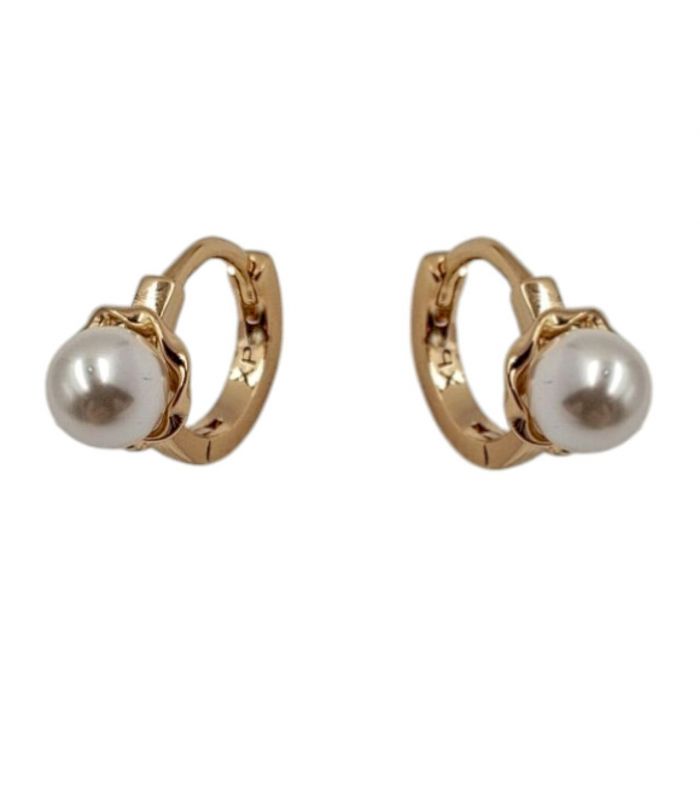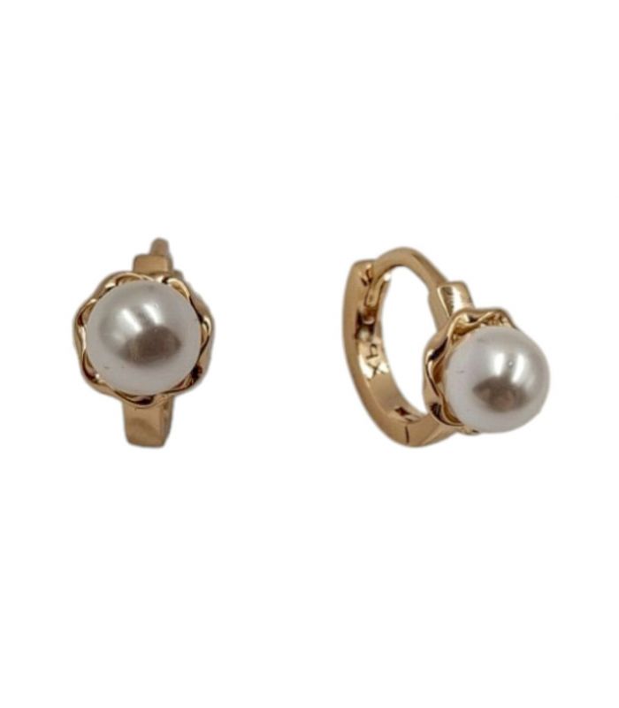 Серьги-колечки "Жемчужинка на цветочке", лимонная позолота