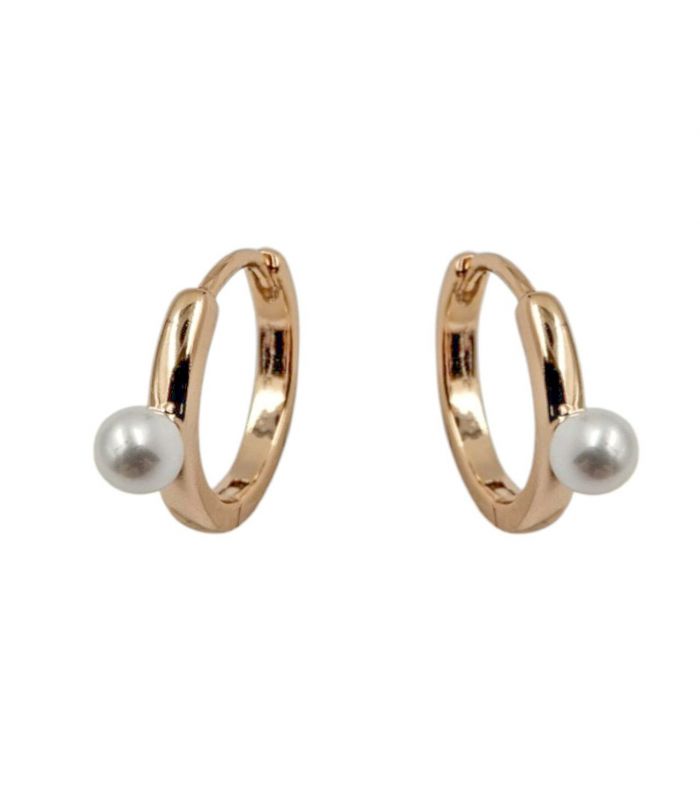 Серьги-колечки с маленькой жемчужинкой, лимонная позолота