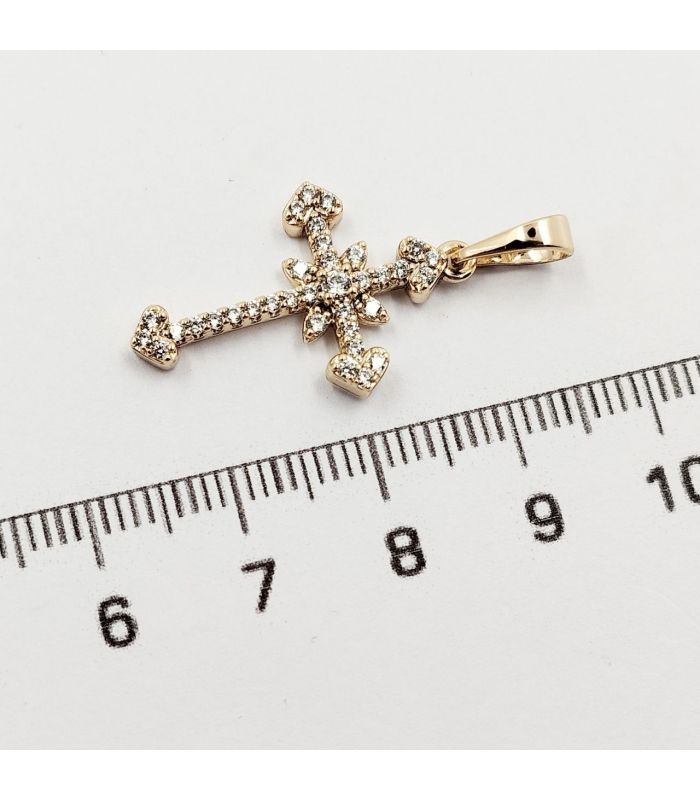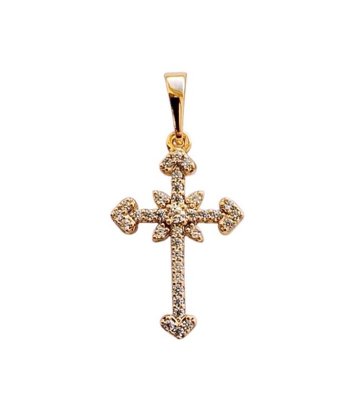 Подвеска "Крестик с цирконими", лимонная позолота