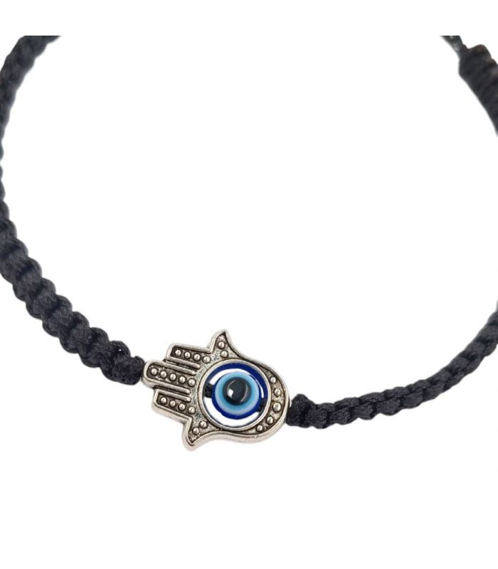 Браслет черная нить "Хамса" родий