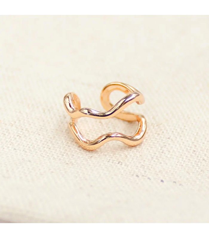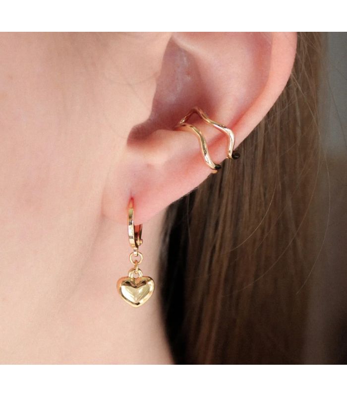 Серёжка-каффа двойная, лимонная позолота (1 шт) (Медицинское золото)