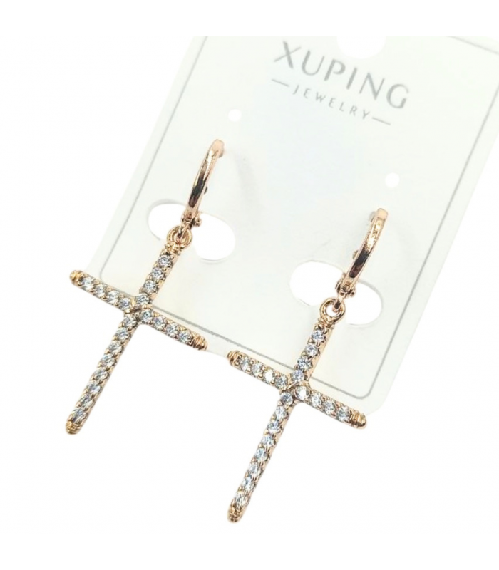 Серьги Xuping "Крестики в камнях" лимонная позолота (медицинское золото)