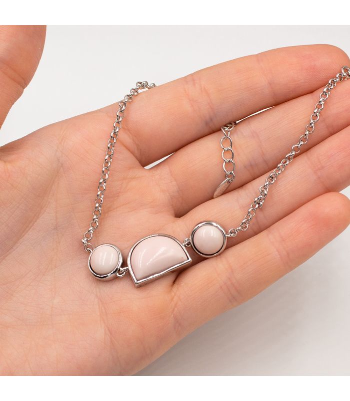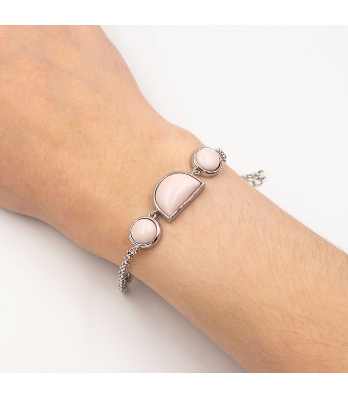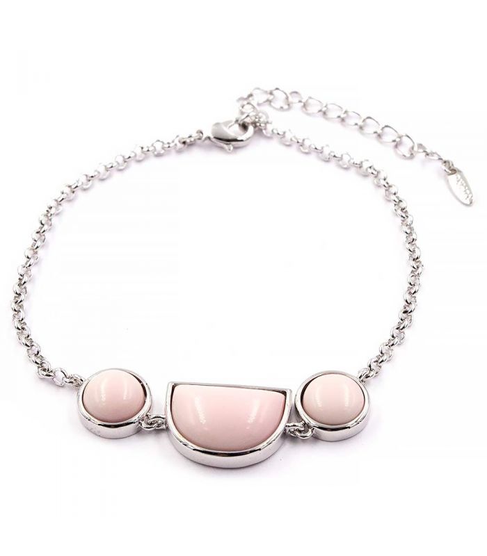 Браслет-цепочка родий 3 камня "Розовый коралл"