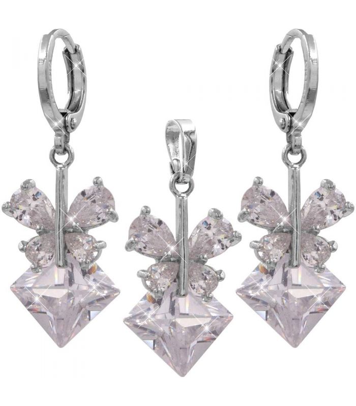 Набор серьги+подвеска «Бабочка на ромбе» родий