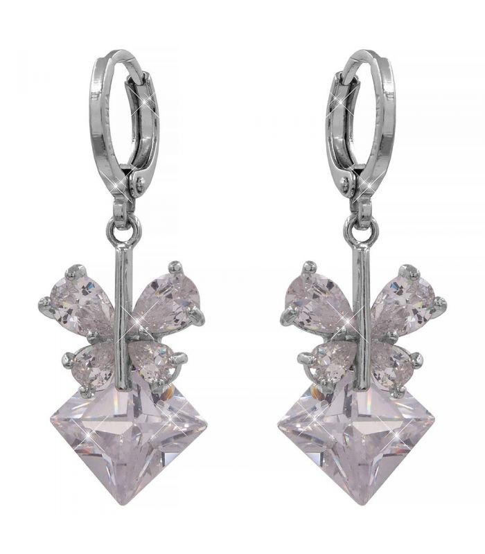 Серьги-подвески «Бабочка на ромбе» родий