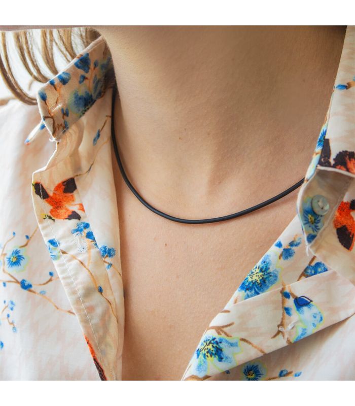 Шнурок на шею черный каучуковый 0.3/55+5.5 см родиум