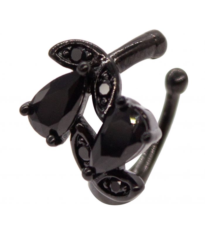 Серёжка-каффа чёрный родий "Веточка" (1 шт)