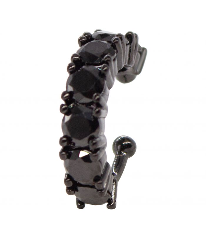 Серёжка-каффа чёрный родий "Семь камешков" (1 шт)