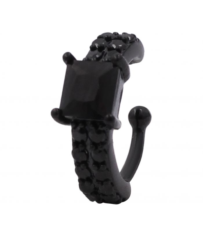 Серёжка-каффа чёрный родий "Квадратный камешек на россыпи камней" (1 шт)
