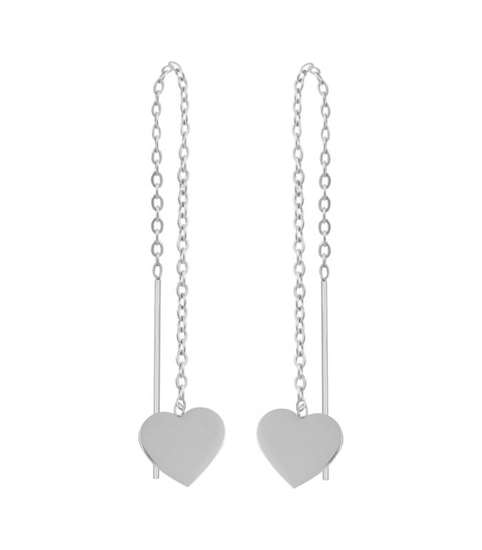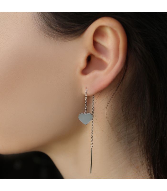 Серьги-протяжки "Сладкие воспоминания" родий (сердечко 1 см)