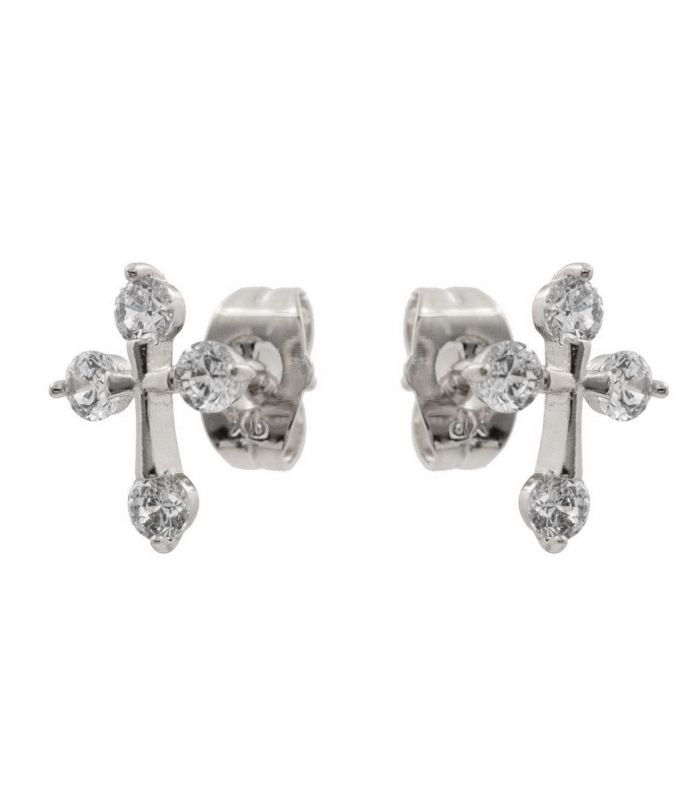 Серьги-гвоздики родий "Крестик - 4 камня по краям"