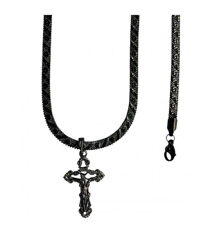 Комплект "Питон", цепочка и крестик, черный родий