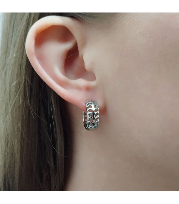 Серьги классические,колечки с вырезами, родий