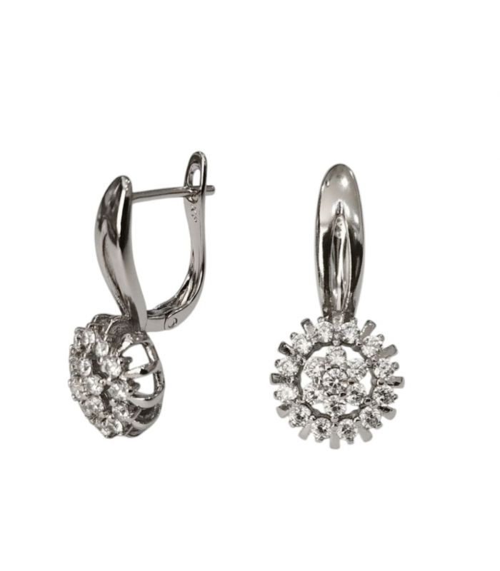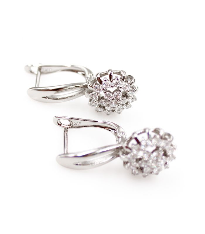 Серьги классические "Цветок из цирконов", родий